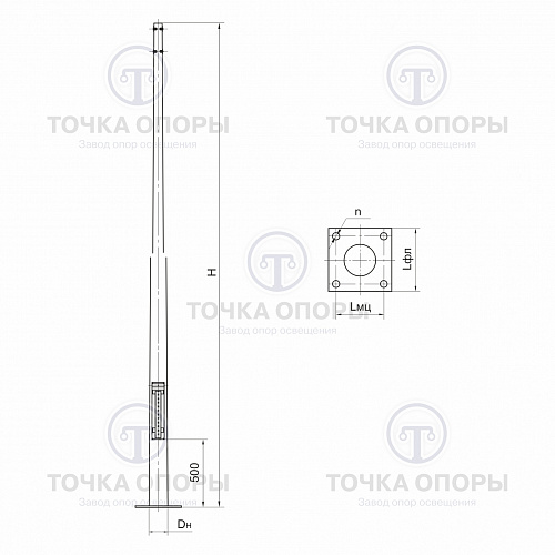 Питающий кабель подводится исключительно подземным способом. Обслуживание опоры производится через специальный лючок, расположенный в ее нижней части.