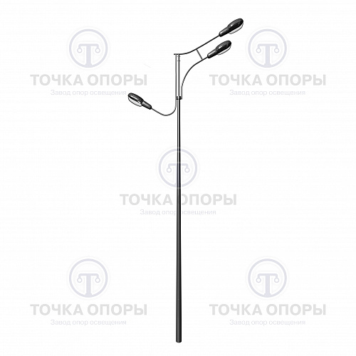 Полный комплект для организации наружного освещения, помимо опоры, включает цоколь (несет декоративную функцию, не обязателен к установке), кронштейн и светильники.
